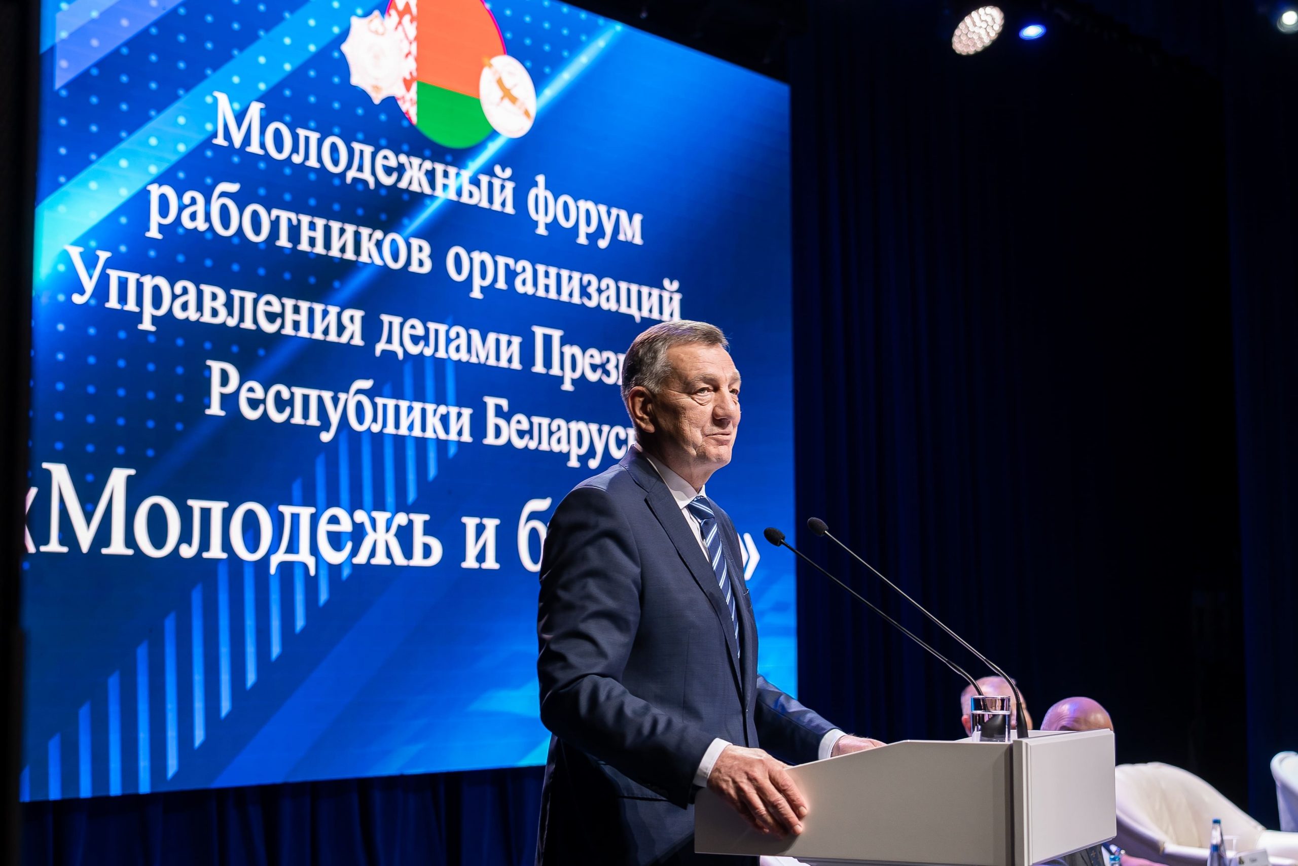 Приветствуя участников форума, Управляющий делами Президента Юрий Назаров отметил, что в Республике Беларусь при определении общенациональных приоритетов развития государства обязательно учитываются интересы молодежи как наиболее активной части общества. Юрий Назаров отметил, что для дальнейшего развития организаций и предприятий системы Управления делами Президента Республики Беларусь необходимо, чтобы приходило больше молодых, инициативных и перспективных работников, которые примут эстафету и опыт от давно работающих, опытных специалистов и вдохнут новую энергию в решение поставленных задач.