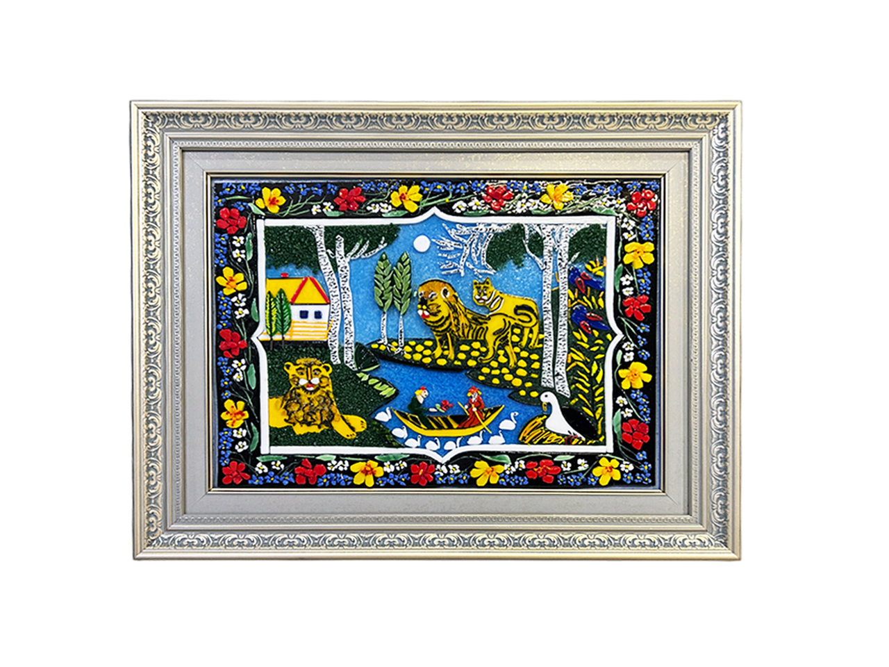 Это произведение искусства — репродукция работы известной белорусской художницы-примитивистки Алены Киш (1889–1949), которая создавала уникальные расписные ковры, известные как «маляваныя дываны» или «маляванки».