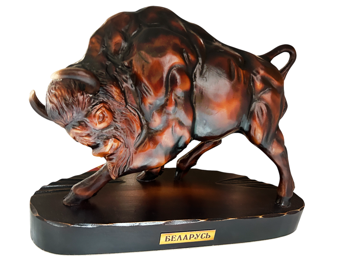 Статуэтка зубра, выполненная из дерева — представляет собой традиционный белорусский сувенир, имеет табличку с надписью «БЕЛАРУСЬ» и используется, в качестве элемента декора или подарка.